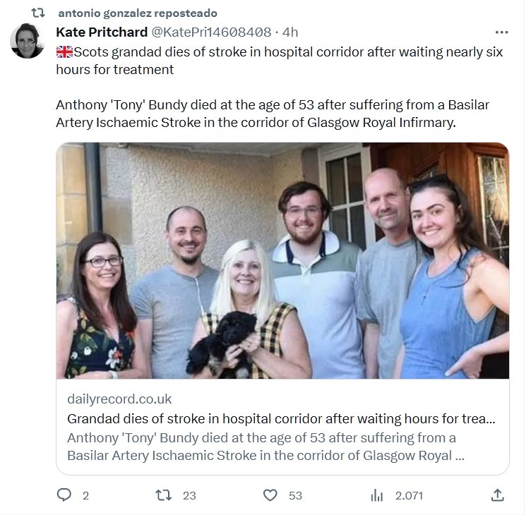NOHAYCOVID HACE ESTRAGOS (EN INGLÉS) 🇪🇸El abuelo escocés muere de un derrame cerebral en el pasillo del hospital después de esperar casi seis horas para recibir tratamiento Posted on agosto 23, 2023 por coronado