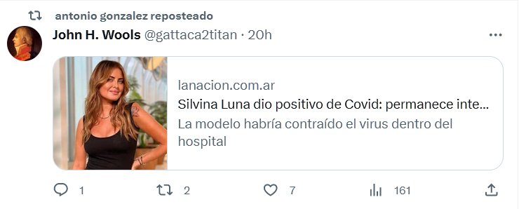 Silvina Luna dio positivo de Covid: permanece internada en terapia intensiva Posted on agosto 23, 2023 por coronado https://www.lanacion.com.ar/espectaculos/personajes/internada-en-terapia-intensiva-silvina-luna-habria-dado-positivo-de-covid-nid22082023/