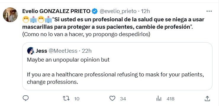 😷🏥😷🏥»Si usted es un profesional de la salud que se niega a usar mascarillas para proteger a sus pacientes, cambie de profesión». (Como no lo van a hacer, yo propongo despedirlos) Posted on agosto 24, 2023 por coronado