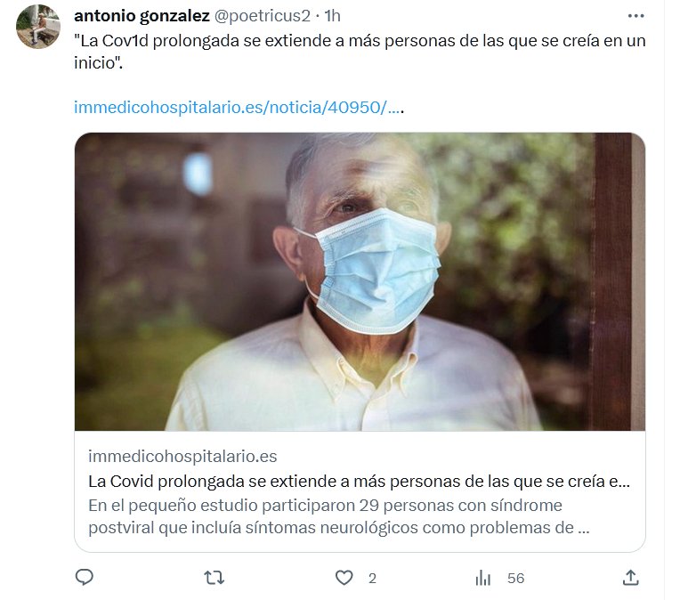 «La Covid prolongada se extiende a más personas de las que se creía en un inicio». Posted on agosto 24, 2023 por coronado https://www.immedicohospitalario.es/noticia/40950/la-covid-prolongada-se-extiende-a-mas-personas-de-las-que-se-creia-e.html