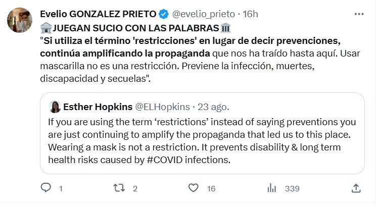 🏦JUEGAN SUCIO CON LAS PALABRAS🏛️ «Si utiliza el término ‘restricciones’ en lugar de decir prevenciones, continúa amplificando la propaganda que nos ha traído hasta aquí. Usar mascarilla no es una restricción. Previene la infección, muertes, discapacidad y secuelas».