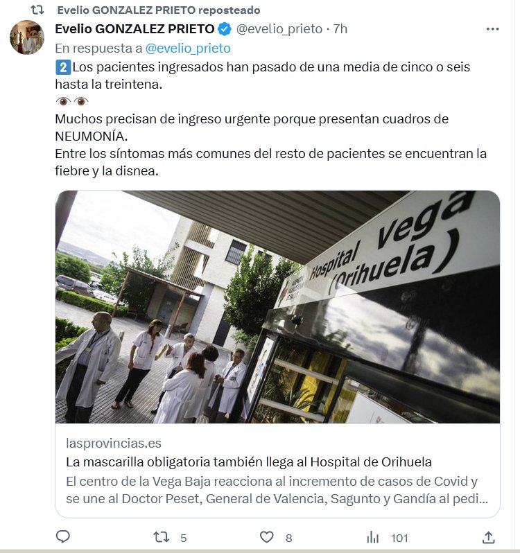 FIN DE PANDEMIA? Los pacientes ingresados han pasado de una media de cinco o seis hasta la treintena. 👁️👁️ Muchos precisan de ingreso urgente porque presentan cuadros de NEUMONÍA. Entre los síntomas más comunes del resto de pacientes se encuentran la fiebre y la disnea.