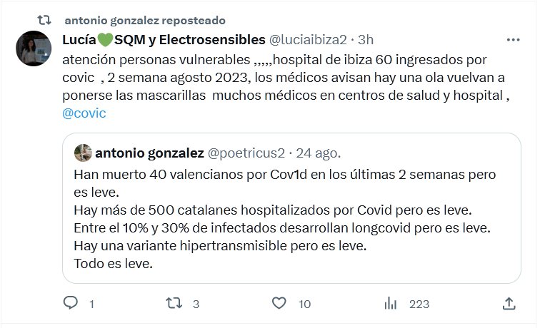 TESTIMONIOS atención personas vulnerables ,,,,,hospital de ibiza 60 ingresados por covic , 2 semana agosto 2023, los médicos avisan hay una ola vuelvan a ponerse las mascarillas muchos médicos en centros de salud y hospital