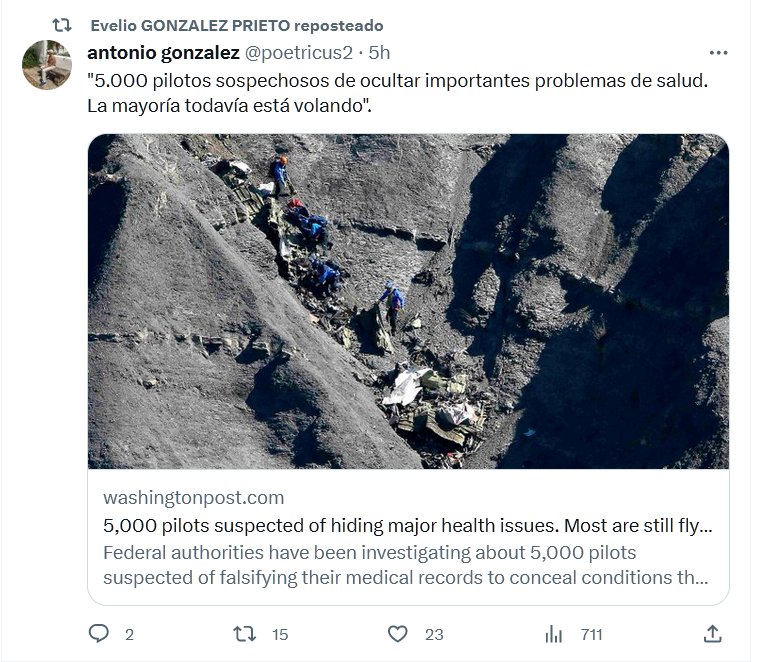 NODIGASQUEESCOVID, NOCOVID Y POSTCOVID HACEN ESTRAGOS «5.000 pilotos sospechosos de ocultar importantes problemas de salud. La mayoría todavía está volando». Posted on agosto 27, 2023 por coronado