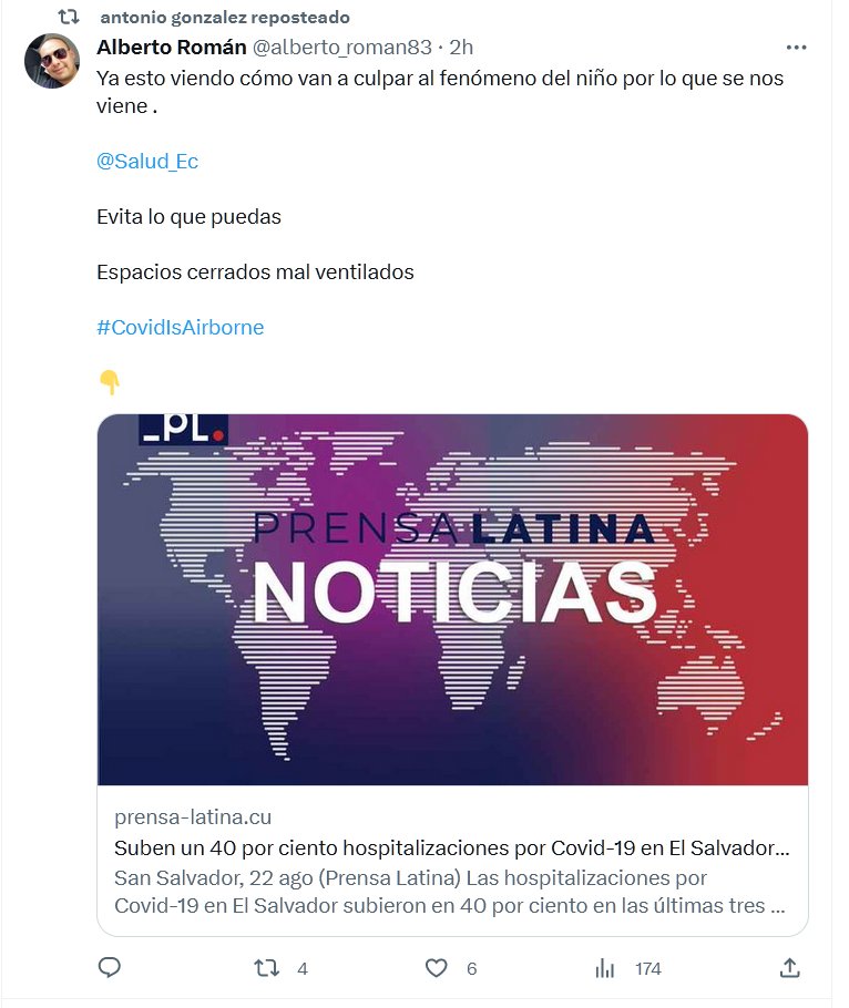 Ya esto viendo cómo van a culpar al fenómeno del niño por lo que se nos viene . @Salud_Ec Evita lo que puedas Espacios cerrados mal ventilados #CovidIsAirborne Posted on agosto 27, 2023 por coronado