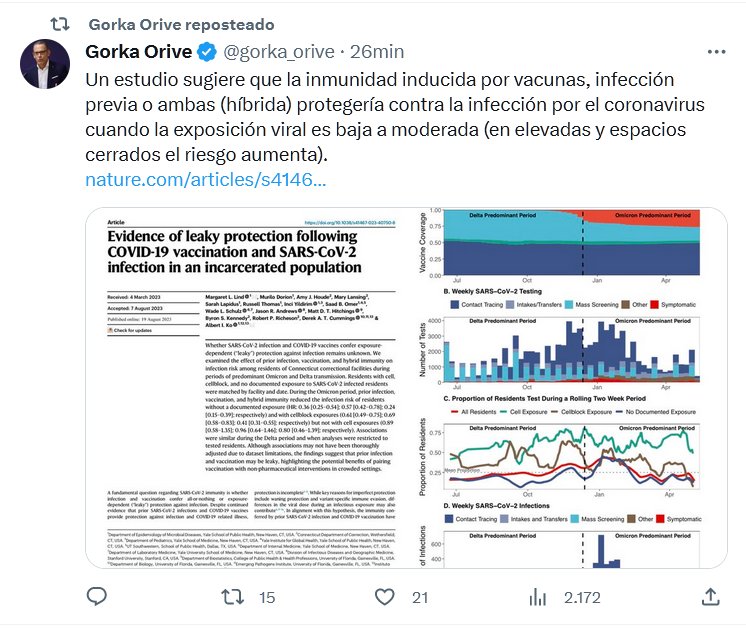 Un estudio sugiere que la inmunidad inducida por vacunas, infección previa o ambas (híbrida) protegería contra la infección por el coronavirus cuando la exposición viral es baja a moderada (en elevadas y espacios cerrados el riesgo aumenta).