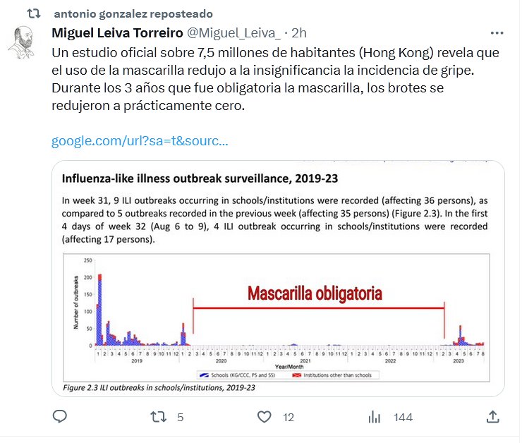 PARA QUÉ MÁS SE PODRÍA USAR? Un estudio oficial sobre 7,5 millones de habitantes (Hong Kong) revela que el uso de la mascarilla redujo a la insignificancia la incidencia de gripe. Durante los 3 años que fue obligatoria la mascarilla, los brotes se redujeron a prácticamente cero.