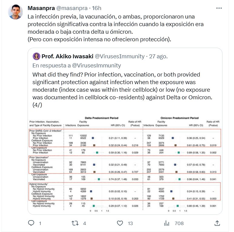 USÁ BARBIJO! La infección previa, la vacunación, o ambas, proporcionaron una protección significativa contra la infección cuando la exposición era moderada o baja contra delta u ómicron. (Pero con exposición intensa no ofrecieron protección).