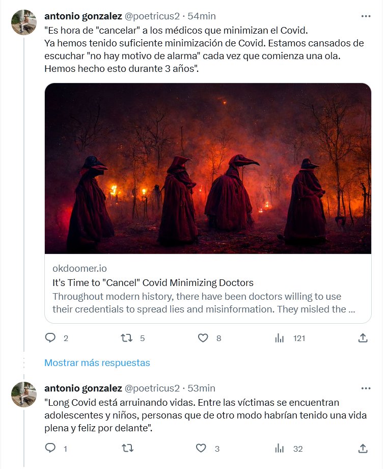 «Es hora de «cancelar» a los médicos que minimizan el Covid. Ya hemos tenido suficiente minimización de Covid. Estamos cansados de escuchar «no hay motivo de alarma» cada vez que comienza una ola. Hemos hecho esto durante 3 años».