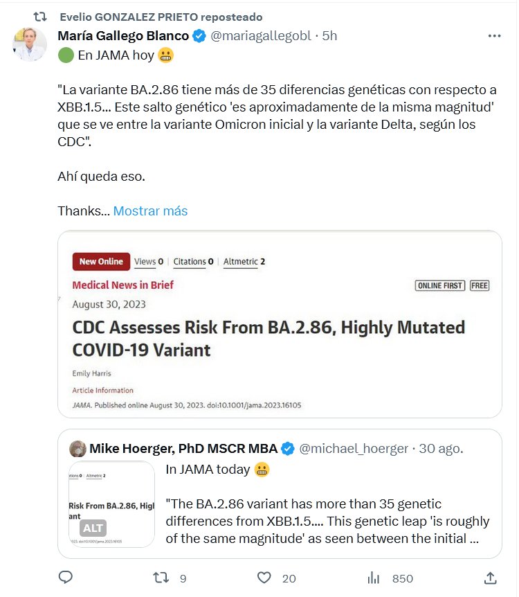 EL RESULTADO DE LA PANDEMIA LIBERADA «La variante BA.2.86 tiene más de 35 diferencias genéticas con respecto a XBB.1.5… Este salto genético ‘es aproximadamente de la misma magnitud’ que se ve entre la variante Omicron inicial y la variante Delta, según los CDC».