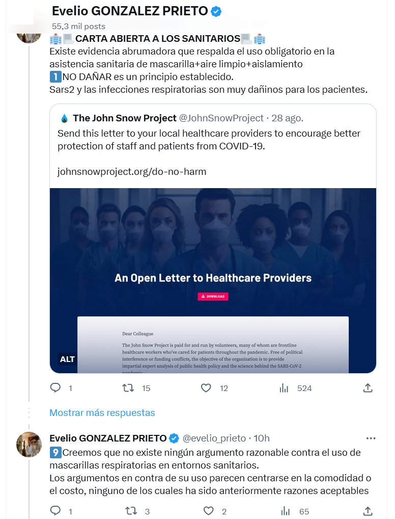 🏥📃CARTA ABIERTA A LOS SANITARIOS📃🏥 Existe evidencia abrumadora que respalda el uso obligatorio en la asistencia sanitaria de mascarilla+aire limpio+aislamiento 1⃣NO DAÑAR es un principio establecido. Sars2 y las infecciones respiratorias son muy dañinos para los pacientes.