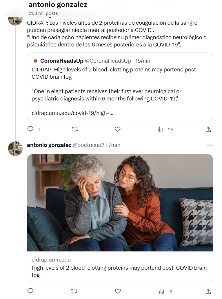 CIDRAP: Los niveles altos de 2 proteínas de coagulación de la sangre pueden presagiar niebla mental posterior a COVID . «Uno de cada ocho pacientes recibe su primer diagnóstico neurológico o psiquiátrico dentro de los 6 meses posteriores a la COVID-19»,
