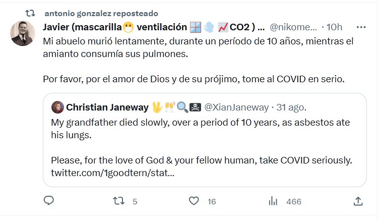 Mi abuelo murió lentamente, durante un período de 10 años, mientras el amianto consumía sus pulmones. Por favor, por el amor de Dios y de su prójimo, tome al COVID en serio. Posted on septiembre 1, 2023 por coronado