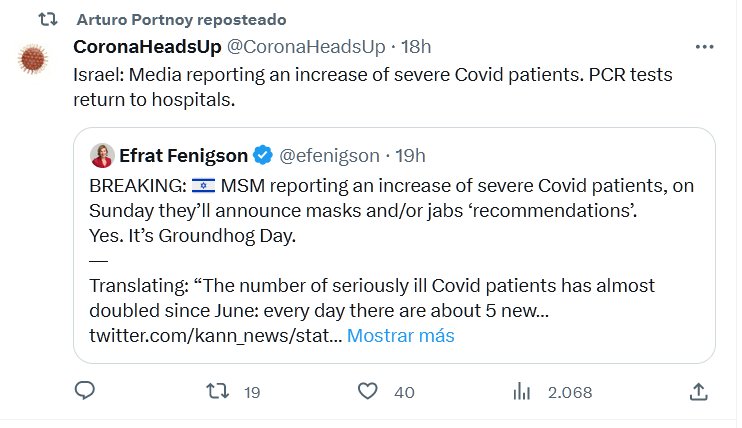 EN INGLÉS Israel: Medios informan de un aumento de pacientes graves de Covid. Las pruebas PCR regresan a los hospitales Posted on septiembre 5, 2023 por coronado