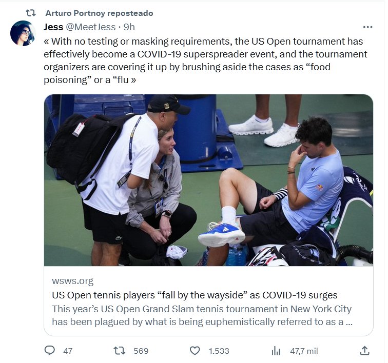 EN INGLÉS « Sin requisitos de pruebas ni uso de mascarillas, el torneo US Open se ha convertido efectivamente en un evento superpropagador de COVID-19, y los organizadores del torneo lo encubren descartando los casos como “intoxicación alimentaria” o “gripe”
