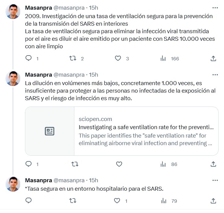 2009. Investigación de una tasa de ventilación segura para la prevención de la transmisión del SARS en interiores La tasa de ventilación segura para eliminar la infección viral transmitida por el aire es diluir el aire emitido por un paciente con SARS 10.000 veces con aire limpio