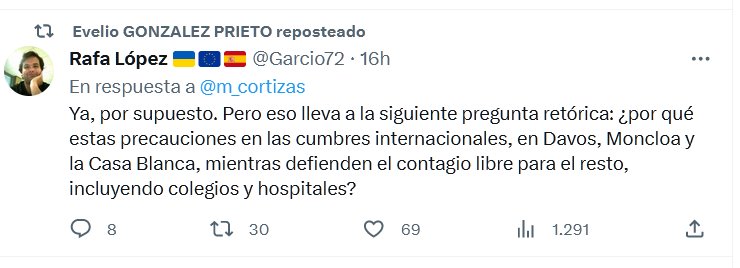 EL REY ESTÁ DESNUDO! Ya, por supuesto. Pero eso lleva a la siguiente pregunta retórica: ¿por qué estas precauciones en las cumbres internacionales, en Davos, Moncloa y la Casa Blanca, mientras defienden el contagio libre para el resto, incluyendo colegios y hospitales?