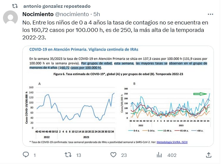 GENOCIDIO EN CURSO No. Entre los niños de 0 a 4 años la tasa de contagios no se encuentra en los 160,72 casos por 100.000 h, es de 250, la más alta de la temporada 2022-23. Posted on septiembre 8, 2023 por coronado