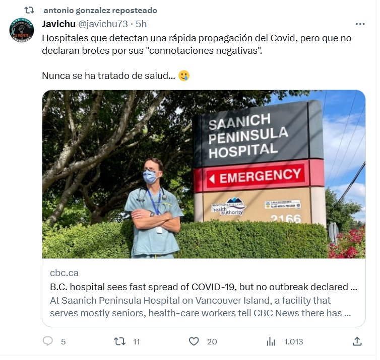 Hospitales que detectan una rápida propagación del Covid, pero que no declaran brotes por sus «connotaciones negativas». Nunca se ha tratado de salud… 🥲