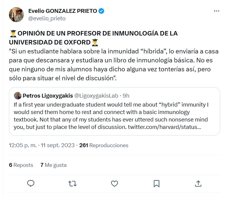 Y SIN EMBARGO EL MUNDO QUIERE RESOLVER COVID CON ESO! 👨🎓OPINIÓN DE UN PROFESOR DE INMUNOLOGÍA DE LA UNIVERSIDAD DE OXFORD👨🎓 «Si un estudiante hablara sobre la inmunidad “híbrida”, lo enviaría a casa para que descansara y estudiara un libro de inmunología básica. No es que ninguno de mis alumnos haya dicho alguna vez tonterías así, pero sólo para situar el nivel de discusión».