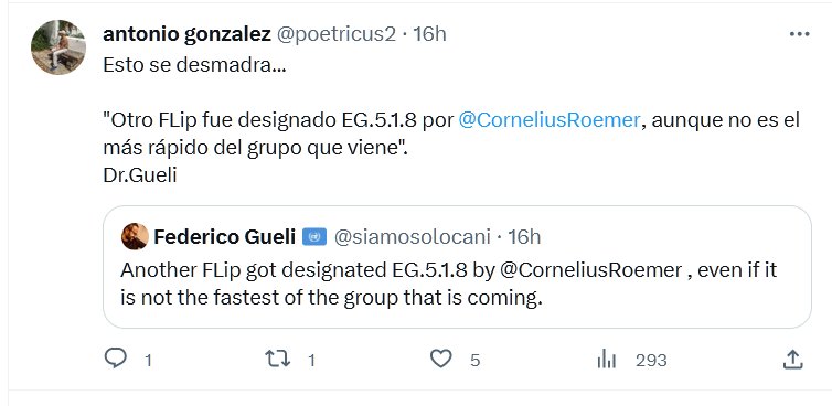 ESTAMOS A UNA NUEVA VARIANTE, DEL FIN Otro FLip fue designado EG.5.1.8 por @CorneliusRoemer , aunque no es el más rápido del grupo que viene. Posted on septiembre 12, 2023 por coronado
