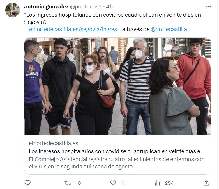 «Los ingresos hospitalarios con covid se cuadruplican en veinte días en Segovia». Posted on septiembre 12, 2023 por coronado