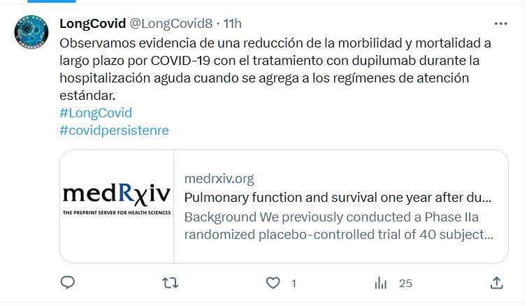 Observamos evidencia de una reducción de la morbilidad y mortalidad a largo plazo por COVID-19 con el tratamiento con dupilumab durante la hospitalización aguda cuando se agrega a los regímenes de atención estándar. #LongCovid #covidpersistente