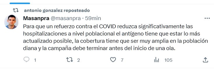 Para que un refuerzo contra el COVID reduzca significativamente las hospitalizaciones a nivel poblacional el antígeno tiene que estar lo más actualizado posible, la cobertura tiene que ser muy amplia en la población diana y la campaña debe terminar antes del inicio de una ola.
