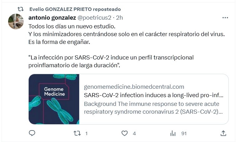Todos los días un nuevo estudio. Y los minimizadores centrándose solo en el carácter respiratorio del virus. Es la forma de engañar. «La infección por SARS-CoV-2 induce un perfil transcripcional proinflamatorio de larga duración».