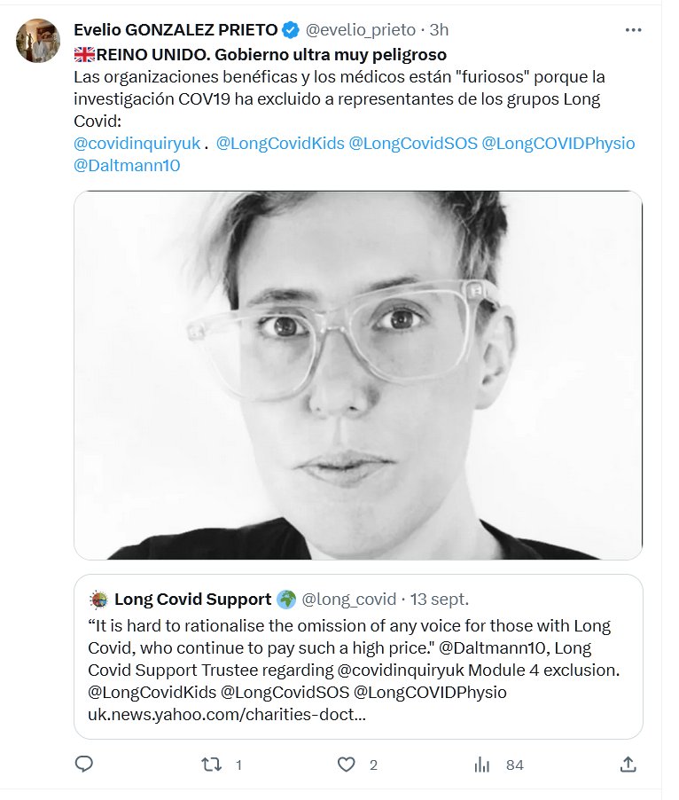 🇬🇧REINO UNIDO. Gobierno ultra muy peligroso Las organizaciones benéficas y los médicos están «furiosos» porque la investigación COV19 ha excluido a representantes de los grupos Long Covid: @covidinquiryuk . @LongCovidKids @LongCovidSOS @LongCOVIDPhysio @Daltmann10