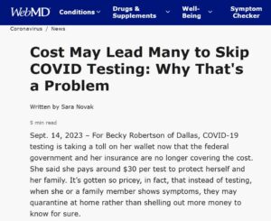 EN INGLÉS El costo puede llevar a muchos a saltarse las pruebas de COVID: por qué es un problema Posted on septiembre 15, 2023 por coronado https://www.webmd.com/covid/news/20230914/cost-leads-many-to-skip-covid-testing