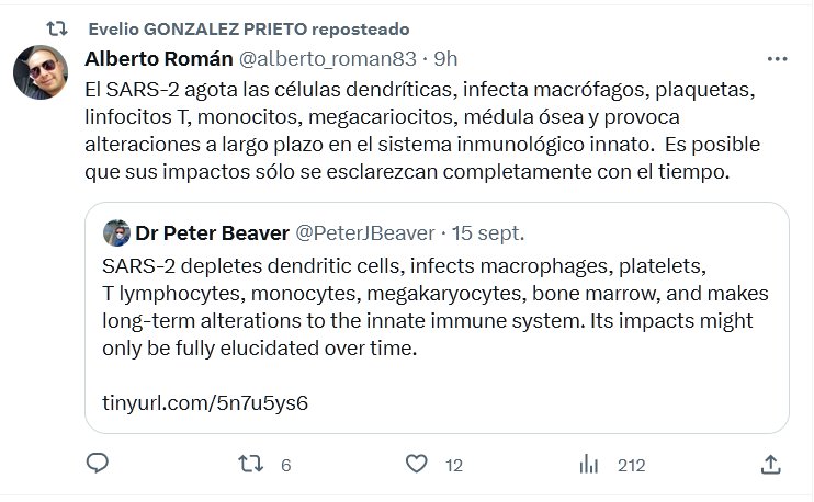 El SARS-2 agota las células dendríticas, infecta macrófagos, plaquetas, linfocitos T, monocitos, megacariocitos, médula ósea y provoca alteraciones a largo plazo en el sistema inmunológico innato. Es posible que sus impactos sólo se esclarezcan completamente con el tiempo.