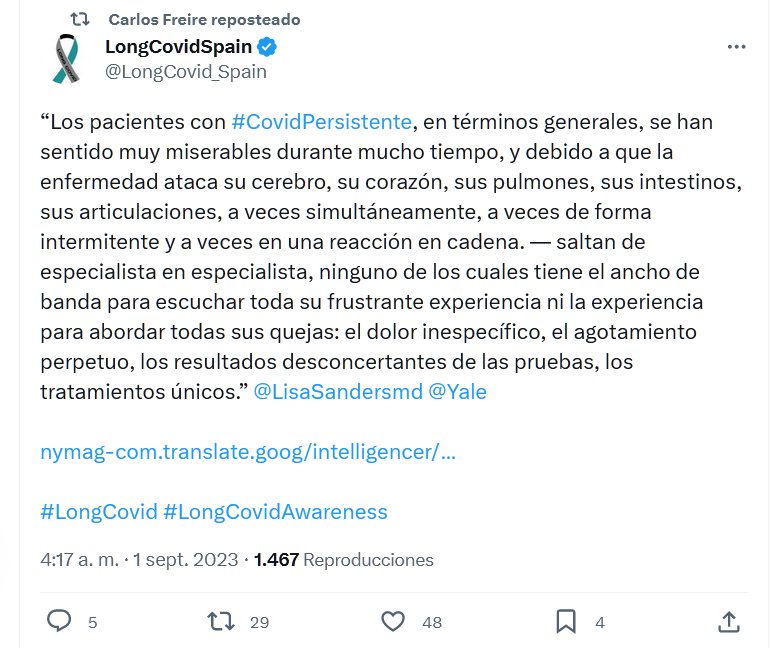 “Los pacientes con #CovidPersistente, en términos generales, se han sentido muy miserables durante mucho tiempo, y debido a que la enfermedad ataca su cerebro, su corazón, sus pulmones, sus intestinos, sus articulaciones, a veces simultáneamente, a veces de forma intermitente y a veces en una reacción en cadena. — saltan de especialista en especialista…»