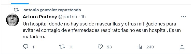 POLÍTICA DE GENOCIDIO Un hospital donde no hay uso de mascarillas y otras mitigaciones para evitar el contagio de enfermedades respiratorias no es un hospital. Es un matadero. Posted on septiembre 16, 2023 por coronado