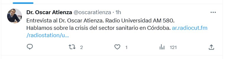 Entrevista al Dr. Oscar Atienza. Radio Universidad AM 580. Hablamos sobre la crisis del sector sanitario en Córdoba Posted on septiembre 18, 2023 por coronado https://ar.radiocut.fm/radiostation/universidad-cordoba/listen/2023/09/18/07/59/39/?created_cut_id=1953984