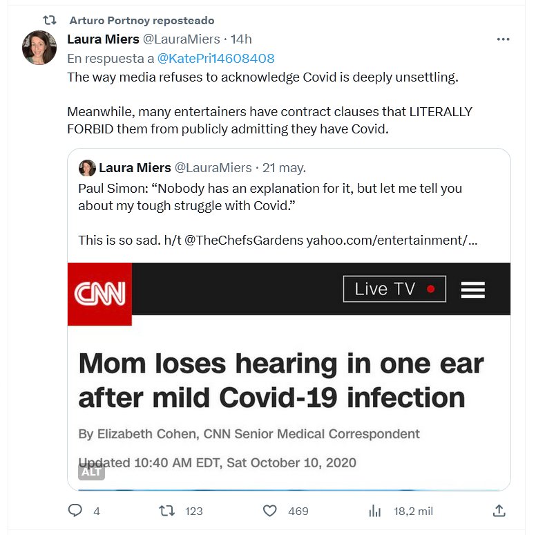 SE SUPO (EN INGLÉS) La forma en que los medios se niegan a reconocer a Covid es profundamente inquietante. Mientras tanto, muchos artistas tienen cláusulas contractuales que LITERALMENTE les PROHIBEN admitir públicamente que tienen Covid.