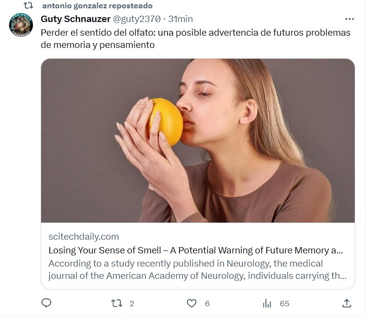 TU HERENCIA COVID Perder el sentido del olfato: una posible advertencia de futuros problemas de memoria y pensamiento Posted on septiembre 18, 2023 por coronado -