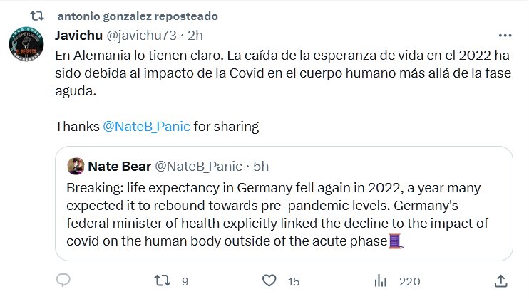 En Alemania lo tienen claro. La caída de la esperanza de vida en el 2022 ha sido debida al impacto de la Covid en el cuerpo humano más allá de la fase aguda. Posted on septiembre 19, 2023 por coronado