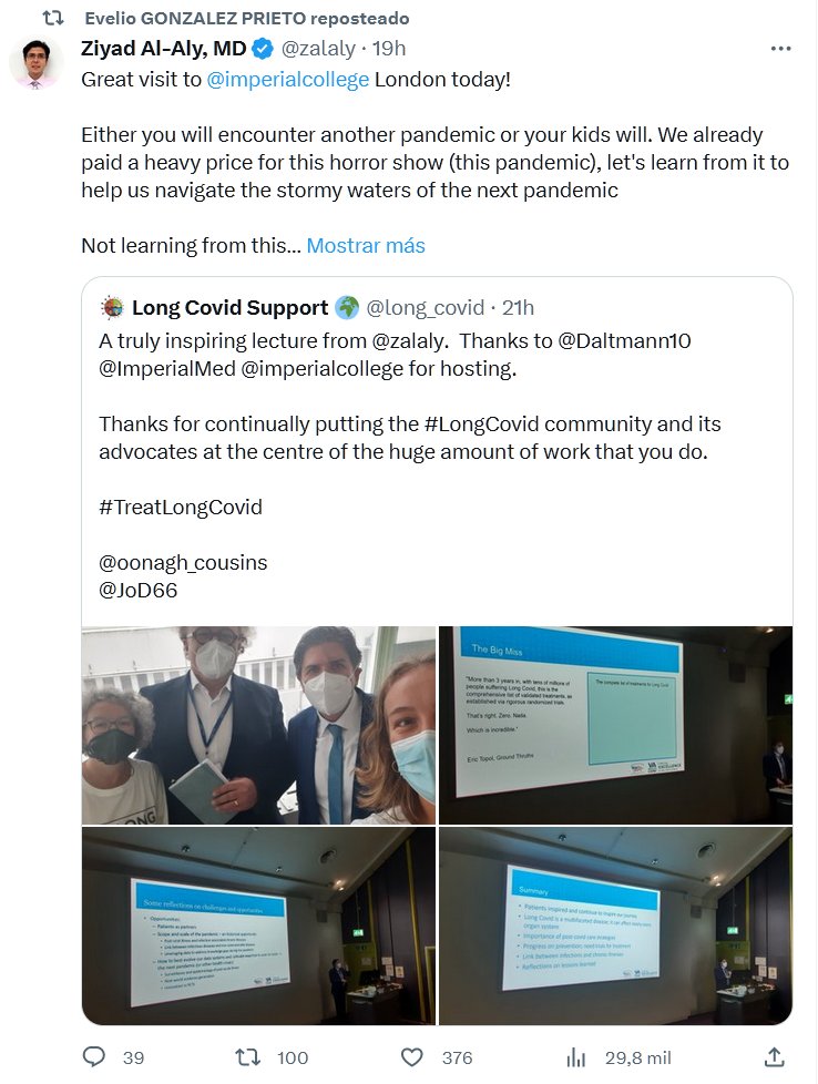 EN INGLÉS Gran visita a @imperialcollege ¡Londres hoy! O te encontrarás con otra pandemia o tus hijos la encontrarán. Ya pagamos un alto precio por este espectáculo de terror (esta pandemia), aprendamos de ello para ayudarnos a navegar las aguas tormentosas de la próxima pandemia.