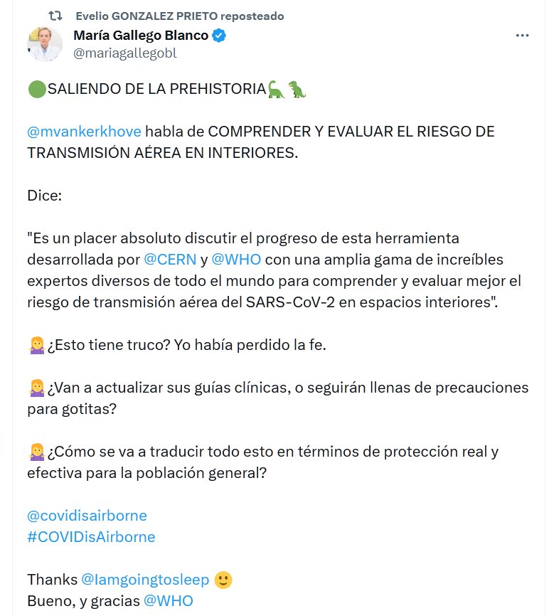 NOS COBRARÁN EL AIRE LIMPIO??? 🟢SALIENDO DE LA PREHISTORIA🦕🦖 @mvankerkhove habla de COMPRENDER Y EVALUAR EL RIESGO DE TRANSMISIÓN AÉREA EN INTERIORES.