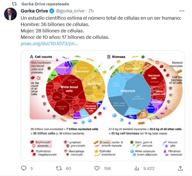 CUÁNTAS TE COMERÁ COVID? Un estudio científico estima el número total de células en un ser humano: Hombre: 36 billones de células. Mujer: 28 billones de células. Menor de 10 años: 17 billones de células