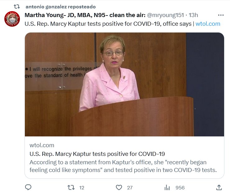 EN INGLÉS La representante estadounidense Marcy Kaptur da positivo por COVID-19, dice la oficina Posted on septiembre 20, 2023 por coronado