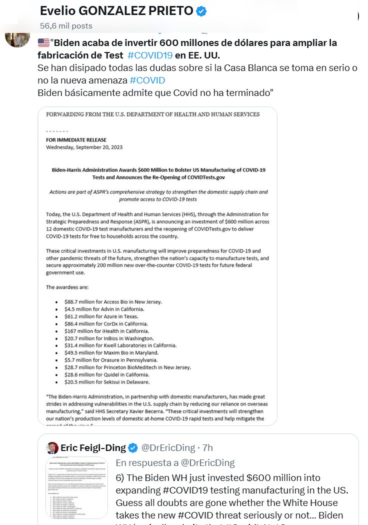 🇺🇸»Biden acaba de invertir 600 millones de dólares para ampliar la fabricación de Test #COVID19 en EE. UU. Se han disipado todas las dudas sobre si la Casa Blanca se toma en serio o no la nueva amenaza #COVID Biden básicamente admite que Covid no ha terminado»
