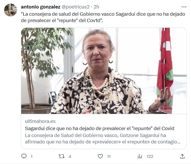 «La consejera de salud del Gobierno vasco Sagardui dice que no ha dejado de prevalecer el «repunte» del Covid». Posted on septiembre 21, 2023 por coronado