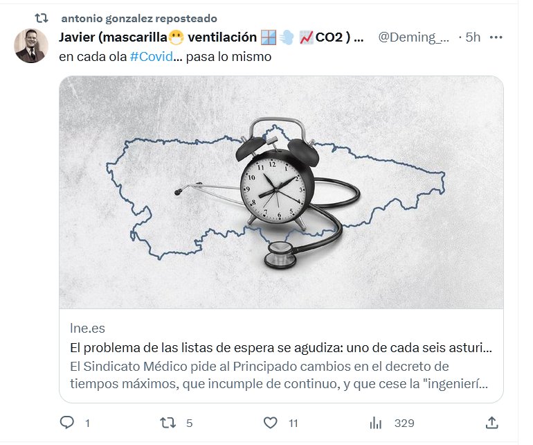 En cada ola #Covid… pasa lo mismo : El problema de las listas de espera se agudiza: uno de cada seis asturianos aguarda por una cita médica con un especialista Posted on septiembre 25, 2023 por coronado https://www.lne.es/asturias/2023/09/25/problema-listas-espera-agudiza-seis-92515214.html