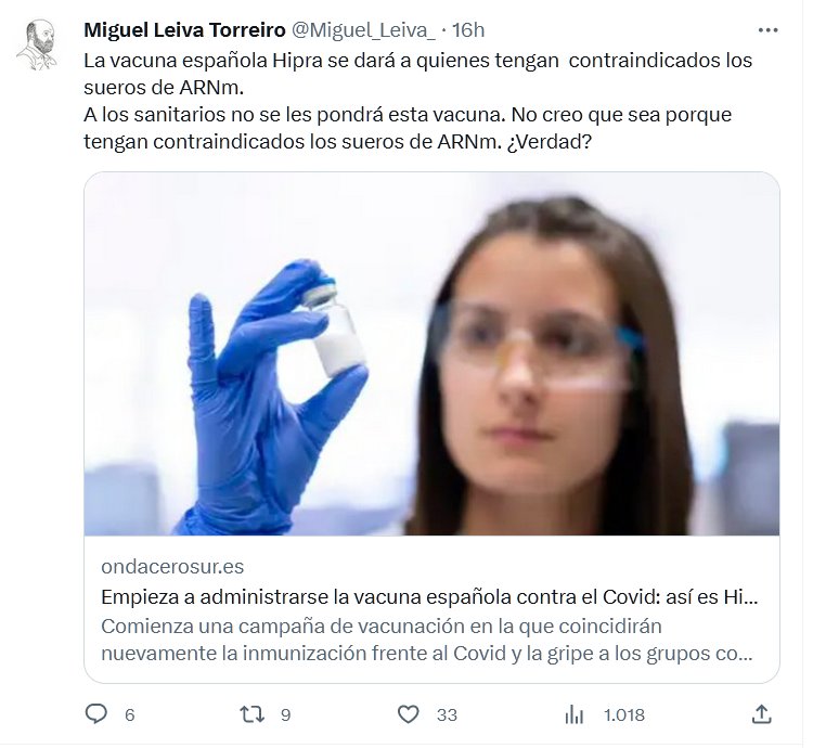La vacuna española Hipra se dará a quienes tengan contraindicados los sueros de ARNm. A los sanitarios no se les pondrá esta vacuna. No creo que sea porque tengan contraindicados los sueros de ARNm. ¿Verdad?