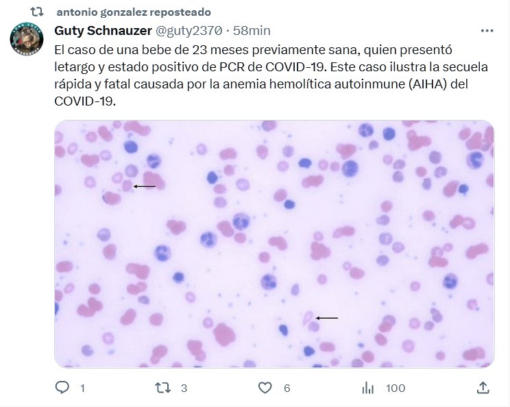 PANDEMIA LIBERADA=LESA HUMANIDAD El caso de una bebe de 23 meses previamente sana, quien presentó letargo y estado positivo de PCR de COVID-19. Este caso ilustra la secuela rápida y fatal causada por la anemia hemolítica autoinmune (AIHA) del COVID-19.