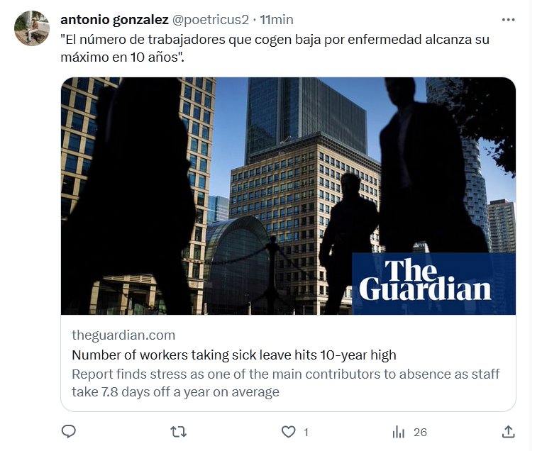 SEGURO QUE PANDEMIA LIBERADA FUE BUENA IDEA? EN INGLÉS El número de trabajadores que toman baja por enfermedad alcanza su máximo en 10 años Posted on septiembre 26, 2023 por coronado https://www.theguardian.com/money/2023/sep/26/number-of-workers-taking-sick-leave-hits-10-year-high?CMP=share_btn_tw