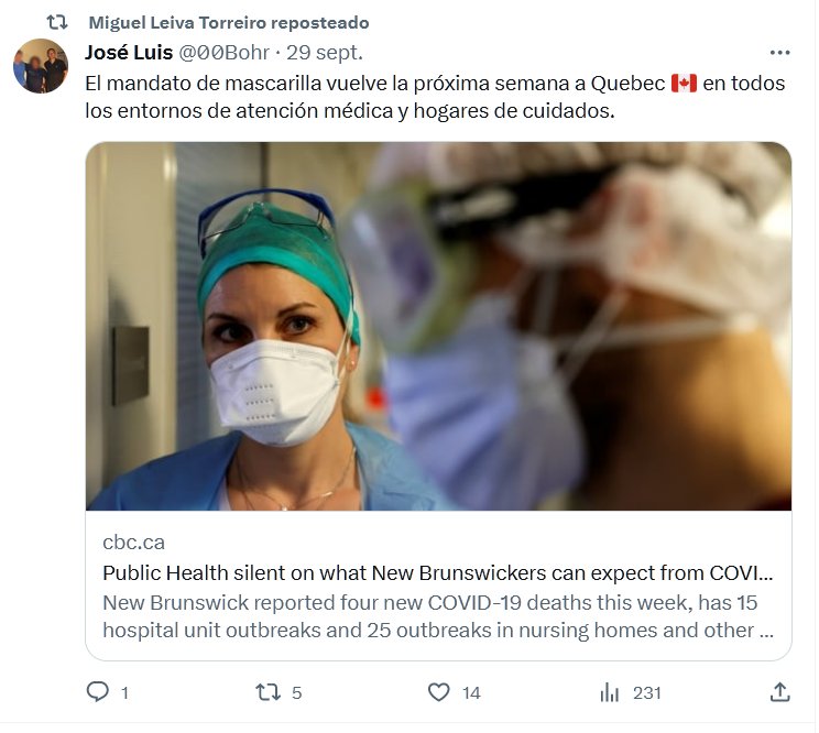 El mandato de mascarilla vuelve la próxima semana a Quebec 🇨🇦 en todos los entornos de atención médica y hogares de cuidados Posted on septiembre 30, 2023 por coronado