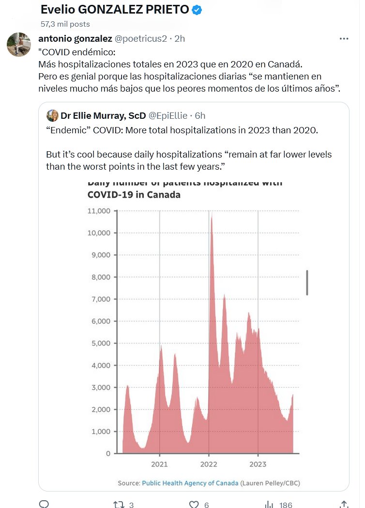 FLAGRANTE CONTRADICCIÓN «COVID endémico: Más hospitalizaciones totales en 2023 que en 2020 en Canadá. Pero es genial porque las hospitalizaciones diarias “se mantienen en niveles mucho más bajos que los peores momentos de los últimos años”.